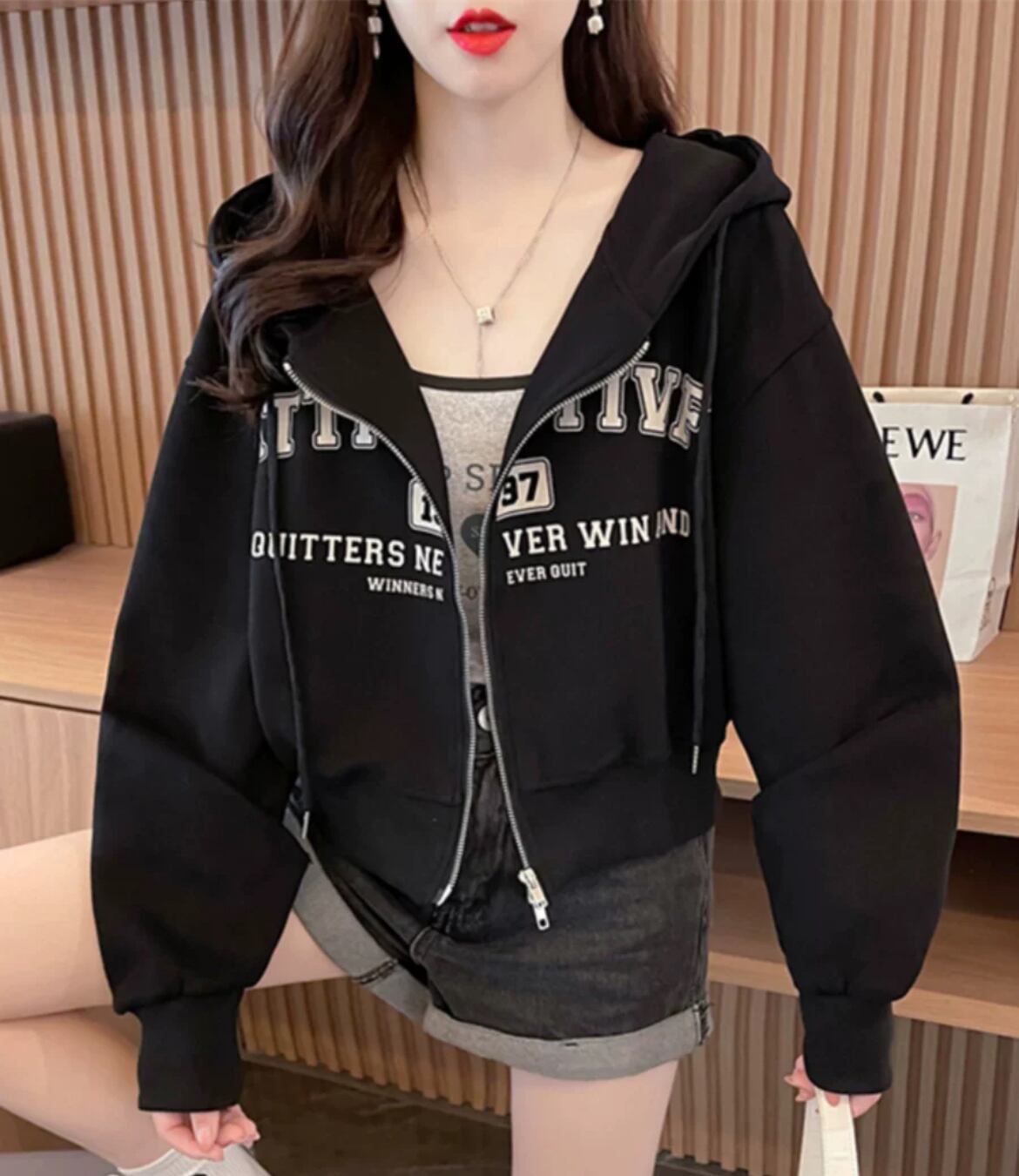 2404006 パーカー レディースファッション パーカー ストリートファッション カジュアル 春秋コーデ 白 黒 グレー