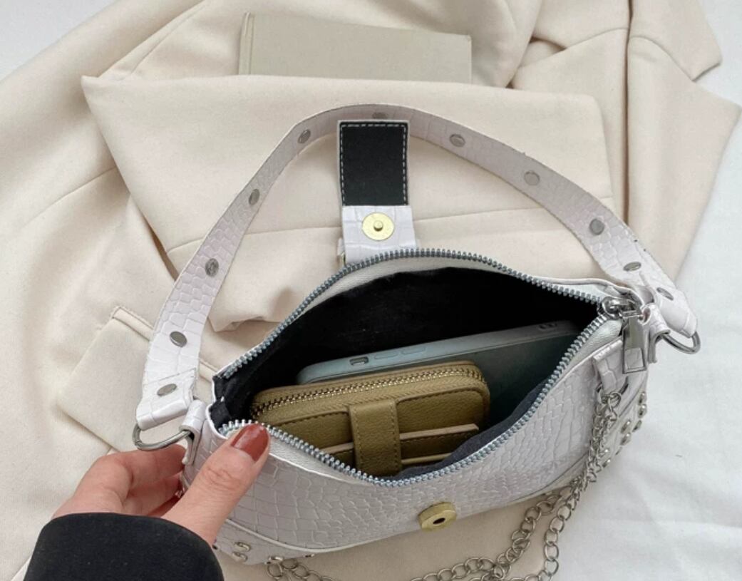 2404037 クロコダイル ショルダーバッグ レディースファッション ストリートファッション ミニマリスト ホワイト ブラック