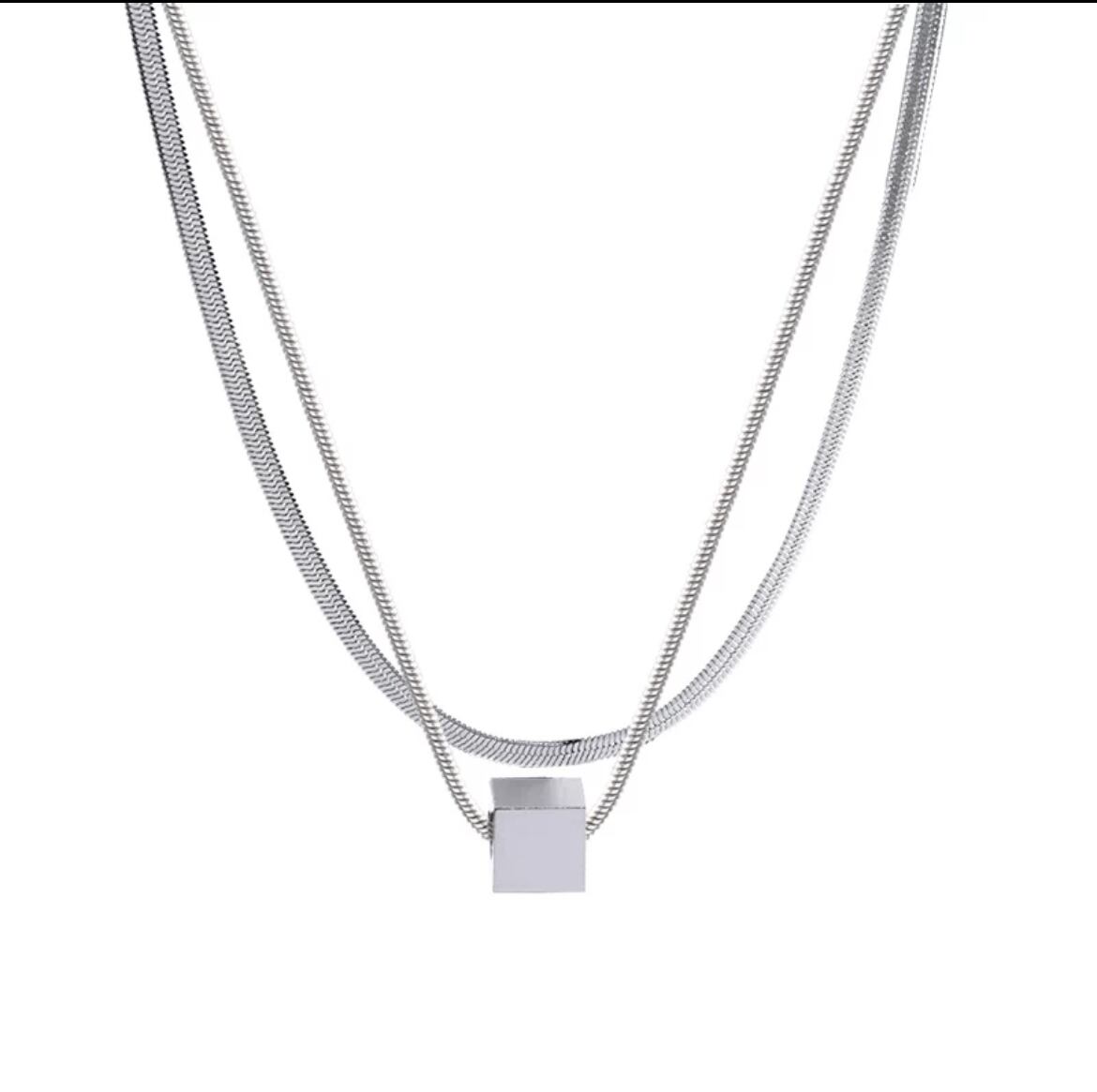 2404044 ユニセックス シルバー2連ネックレス レディースファッション ストリートファッション シルバー