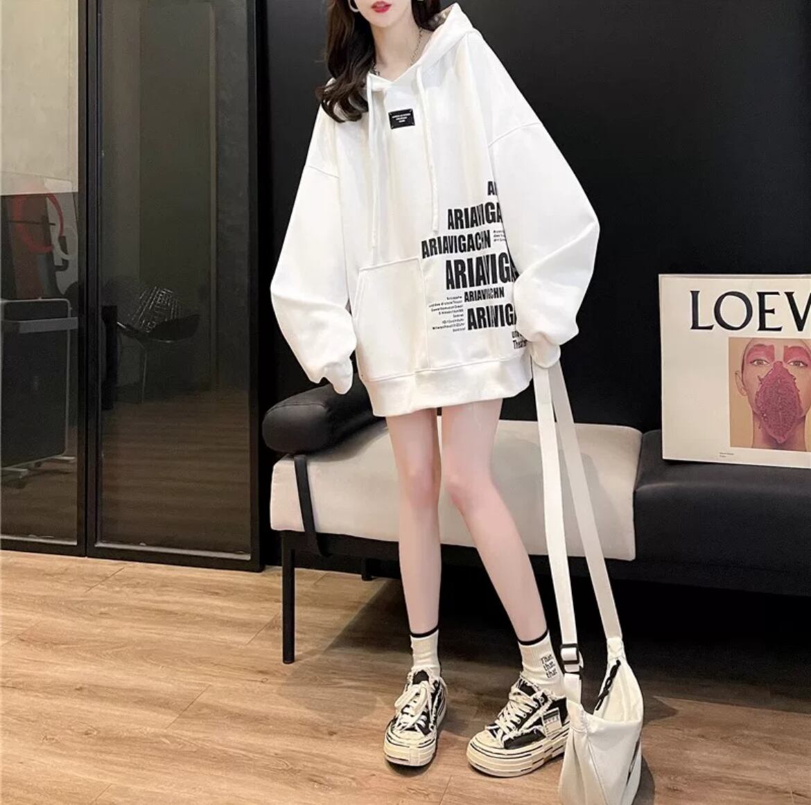 2404053 フード付きプルオーバー ユニセックス レディースファッション ストリートファッション メンズファッション カジュアル スウェット ホワイト ブラック M L XL