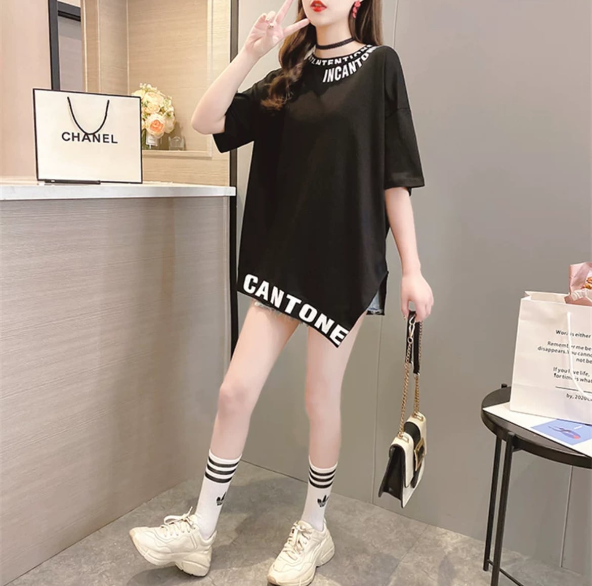 2404068 Tシャツ プルオーバー レディースファッション ストリートファッション オーバーサイズ 大きめ ゆったり ホワイト ブラック M L XL 2XL
