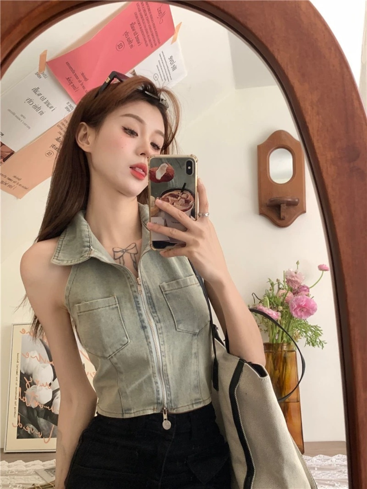 2404093 デニム ジッパー付き ポケット付き レディースファッション ストリートファッション M L XL 2XL