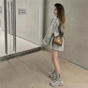 2404097 スウェット オーバー レディースファッション ストリートファッション グレー M L XL