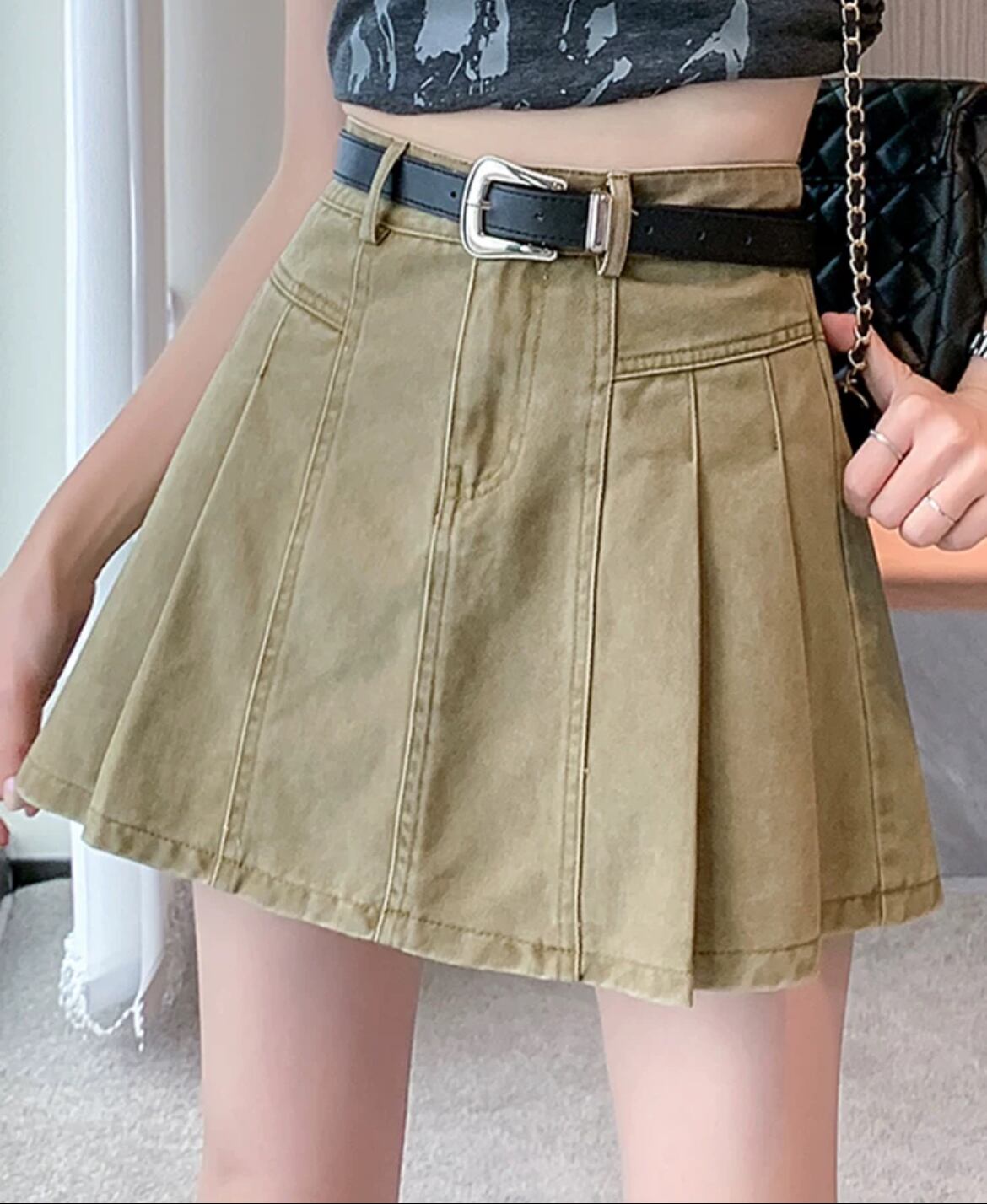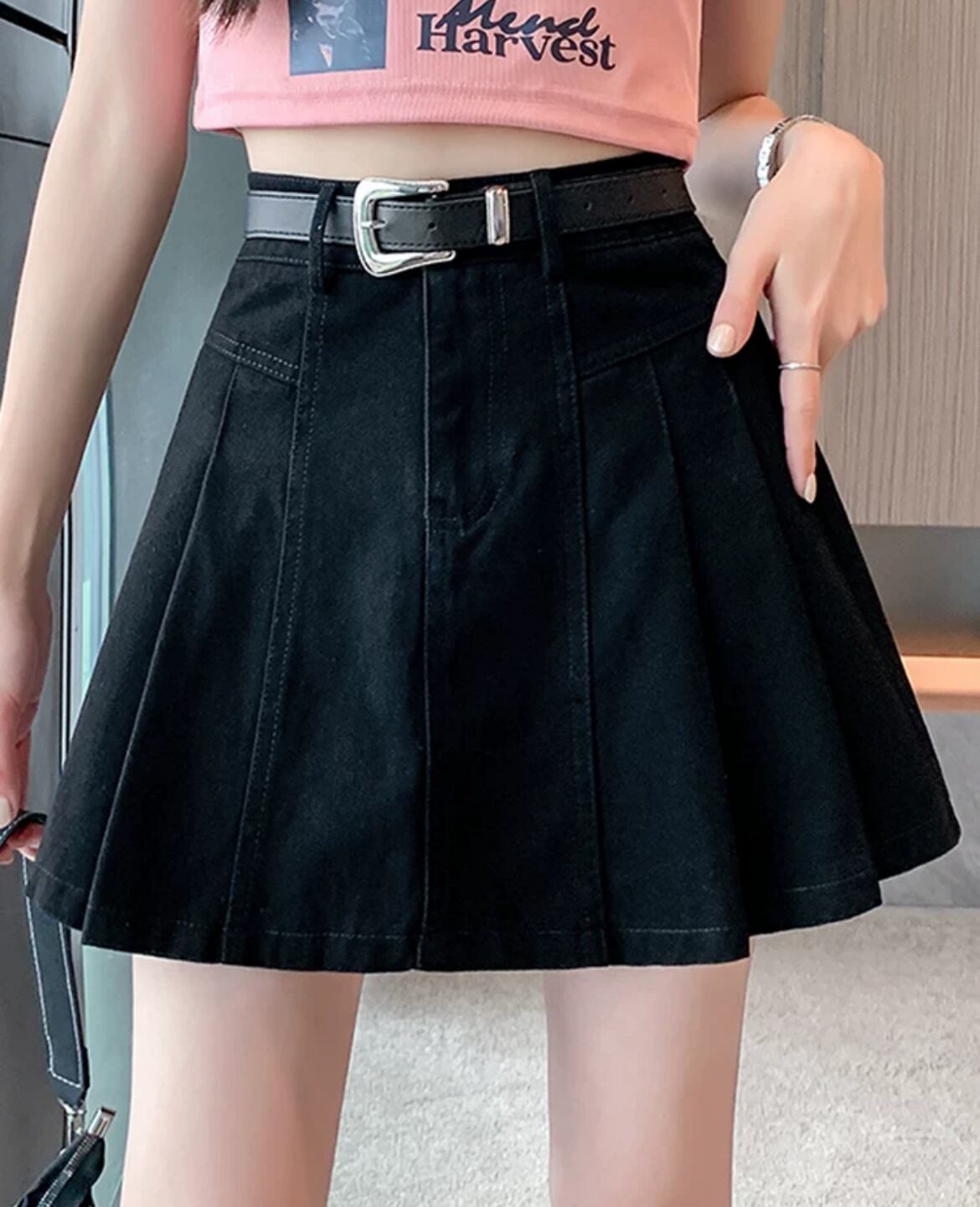 2404100 ミニスカート デニム ベルト付き レディースファッション ブラック ブラウン ブルー S M L XL
