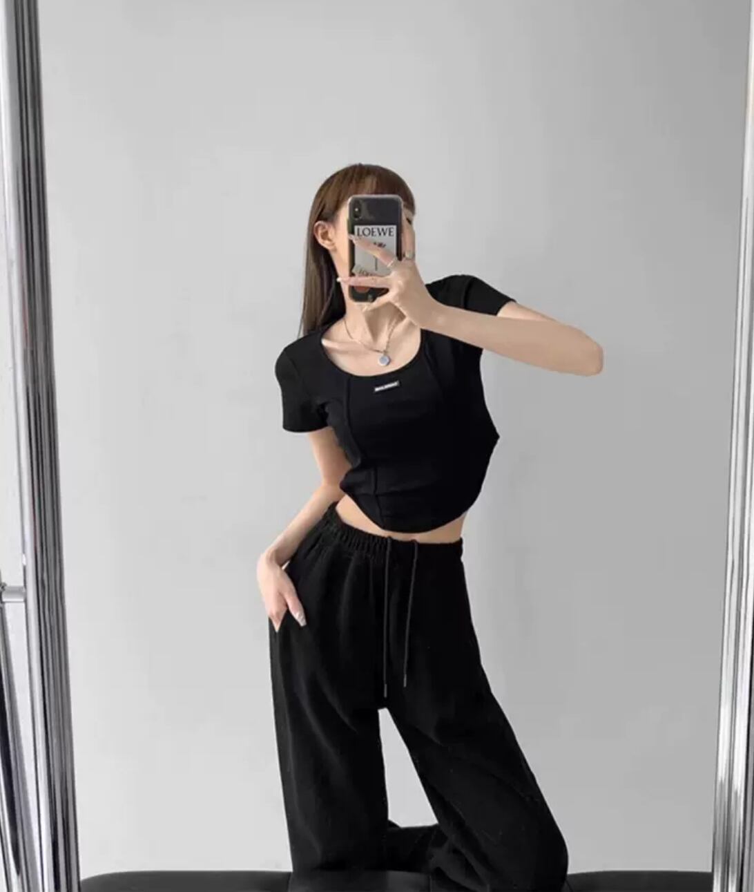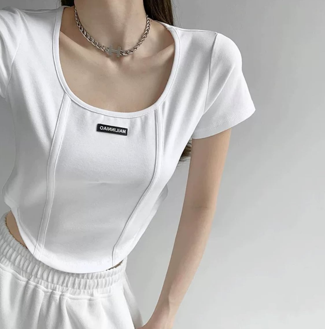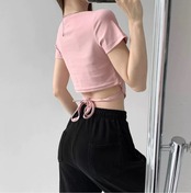 2404110 Tシャツ ショート丈 ストリートファッション ブラック グレー ホワイト ピンク ブラウン S M L XL