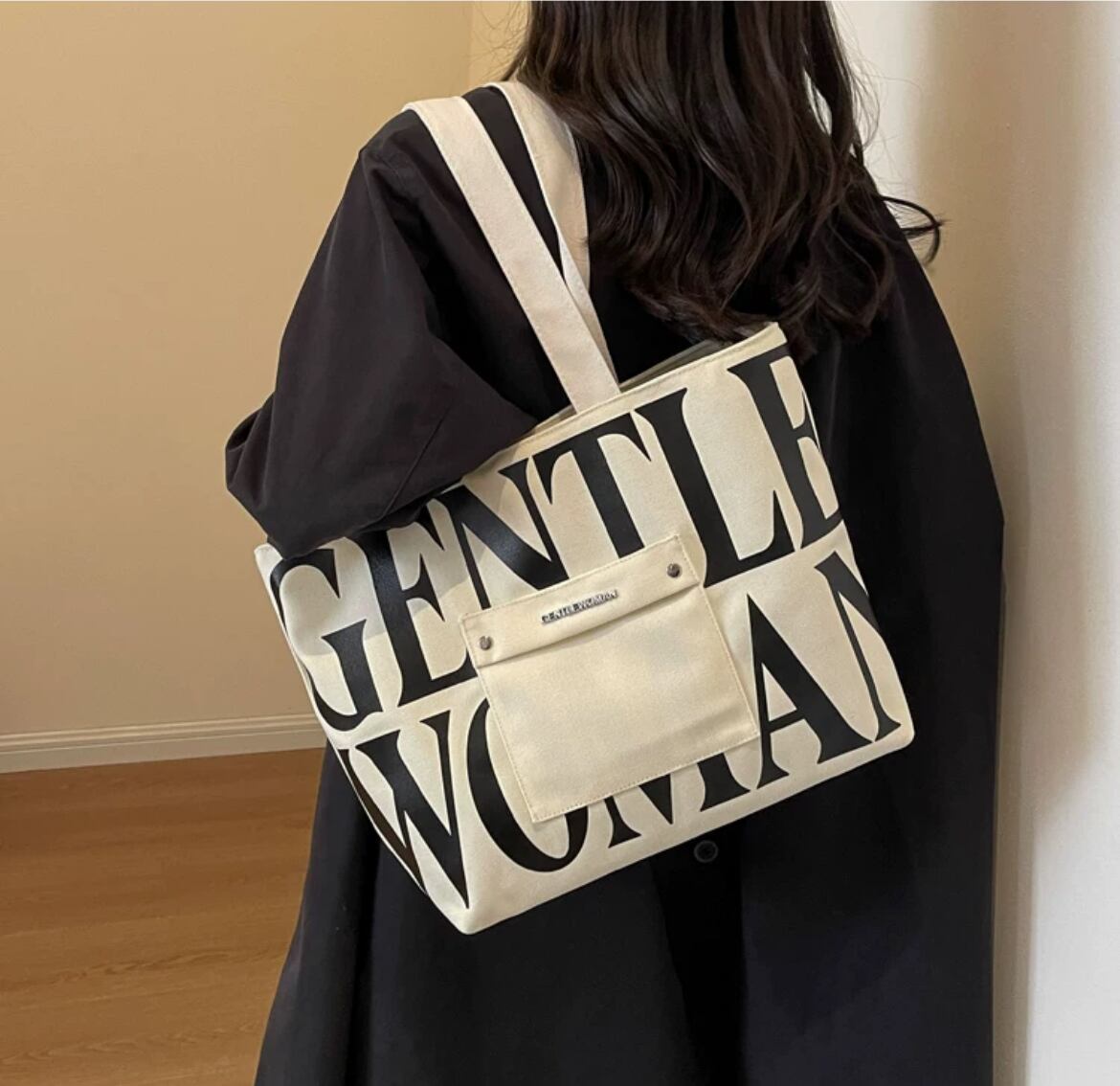 2404116 トートバッグ アルファベット柄 レディースファッション ストリートファッション ホワイト ブラック ベージュ