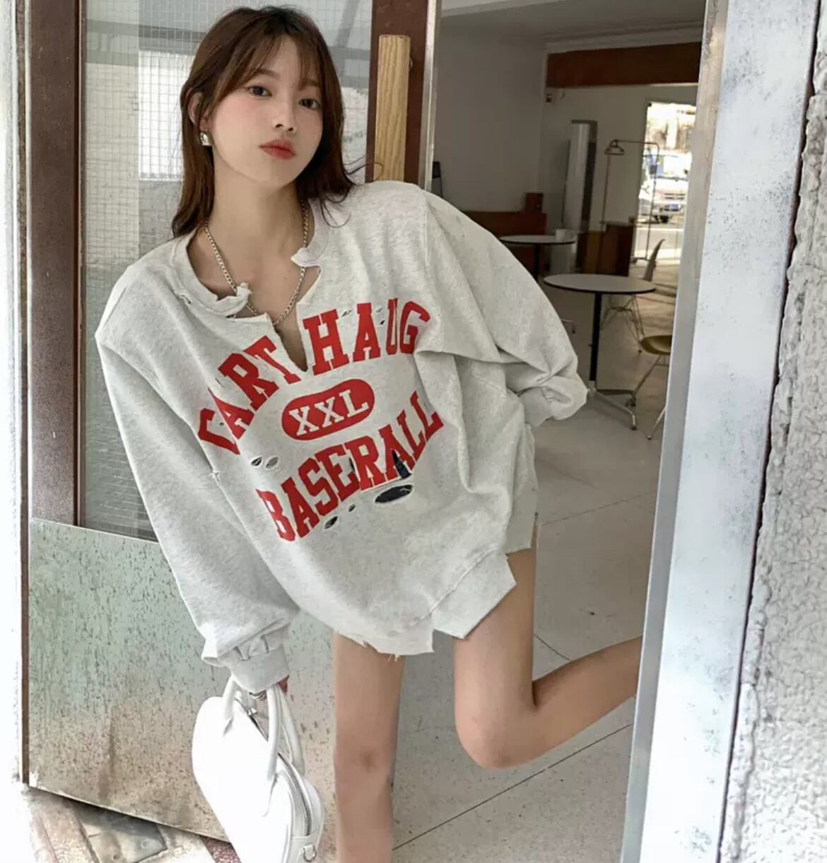 2404129 ダメージトレーナー プルオーバー レディースファッション ストリートファッション ユニセックス ホワイト ブラック M L XL 2XL