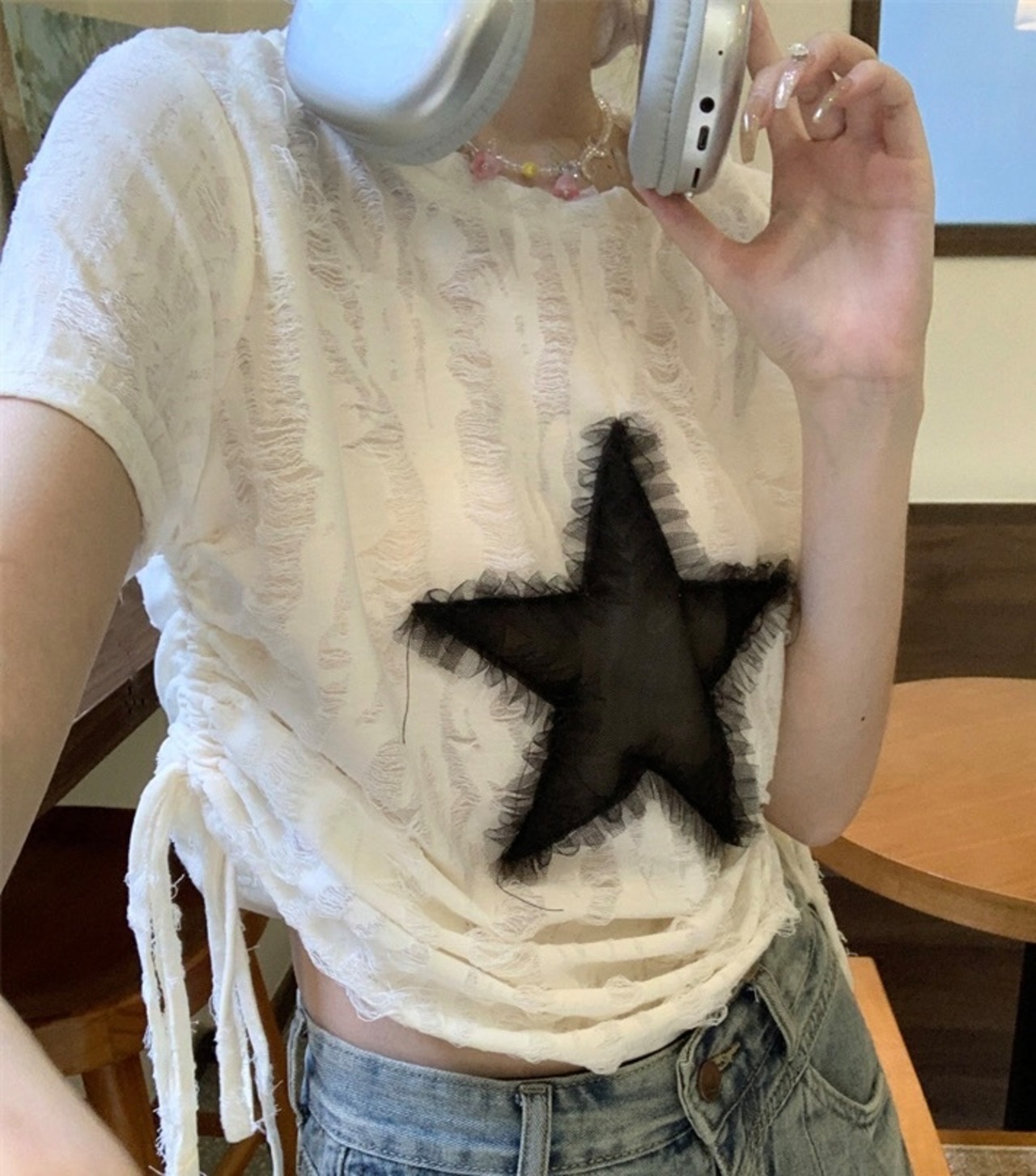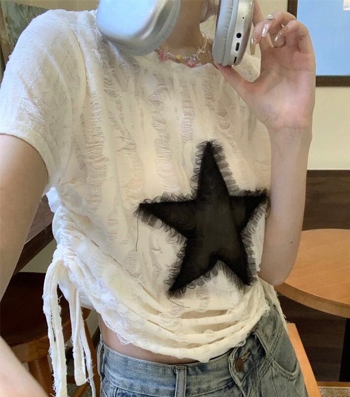 2404137 レディースファッション Tシャツ 半袖 ショート丈 ルーズ ホットガール ニッチトップス ボトリングシャツ 春夏コーデ 新作