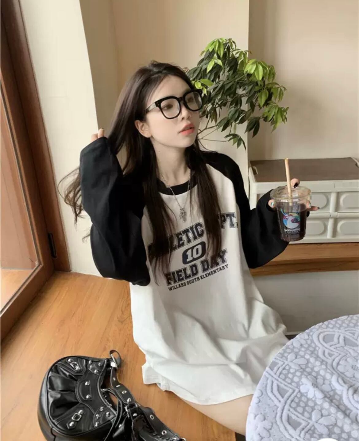 2404144ロンT カラーTシャツ ロゴT レディースファッション ストリートファッション S M L XL 2XL ホワイト