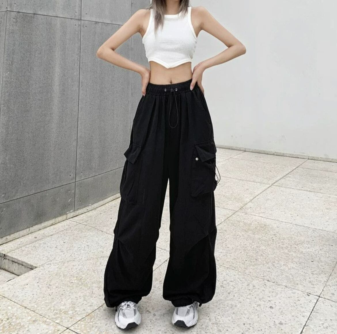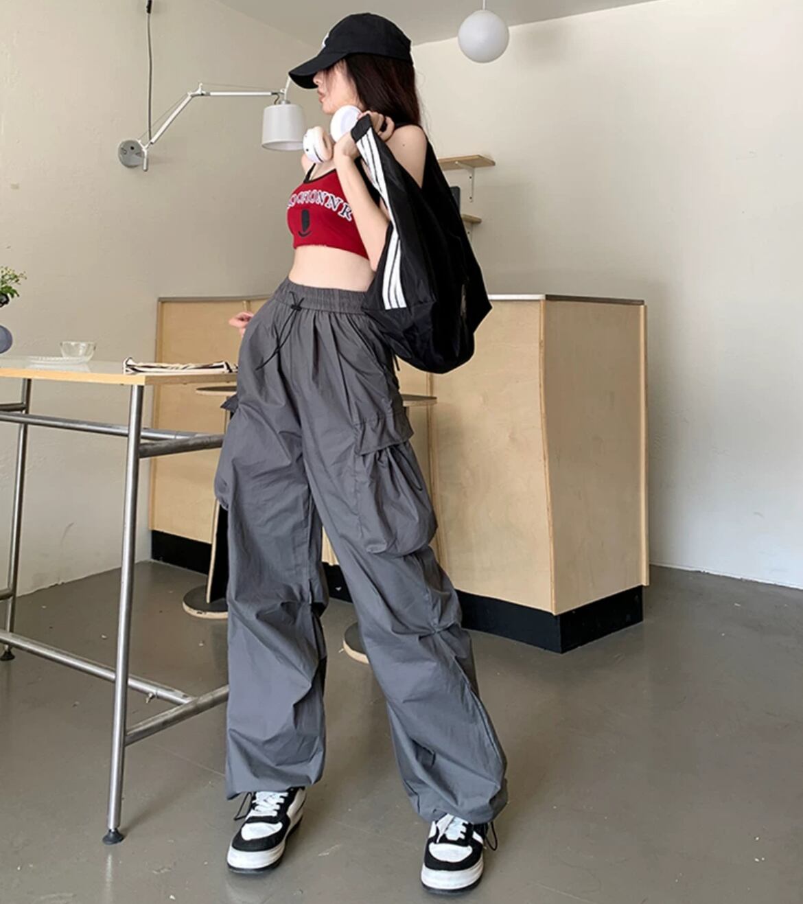 2404146 カーゴパンツ フラップポケット ズボン ストリートファッション カジュアル ワイドレッグ レディースファッション S M L XL 2XL 3XL ブラック グレー カーキ ピンク
