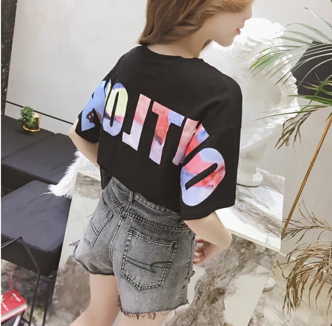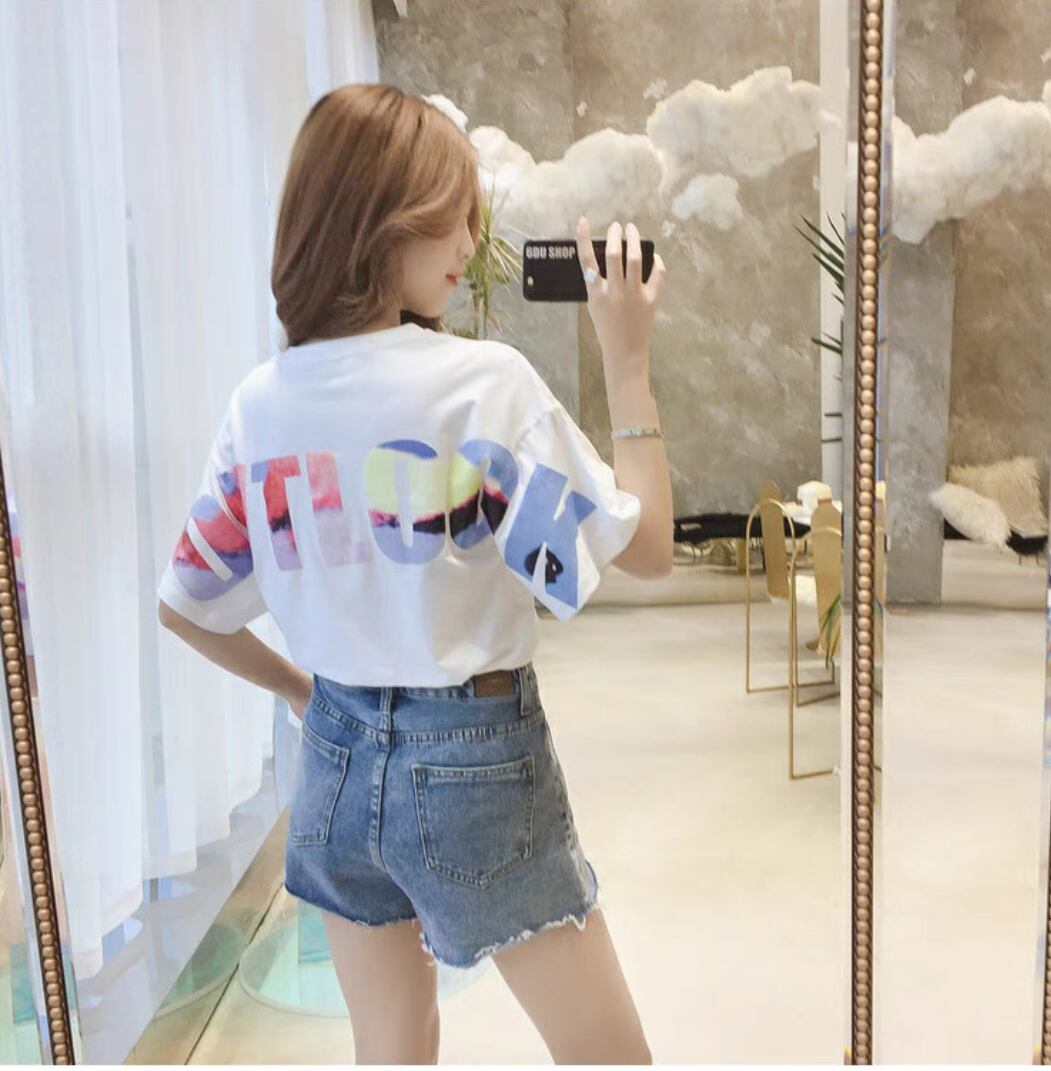 2404155 デジタルロゴTシャツ キャラクターデザインTシャツ ロゴTシャツ レディースファッション ストリートファッション グラフィックプリントTシャツ M L XL 2XL ホワイト ブラック