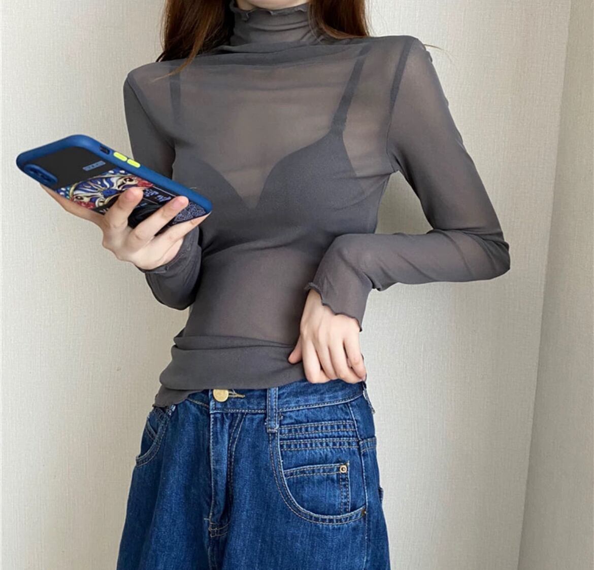2405103 メッシュ トップス ブラなし 無地 透け感 レディースファッション ストリートファッション ホワイト アイボリー グレー ブラック ブラウン