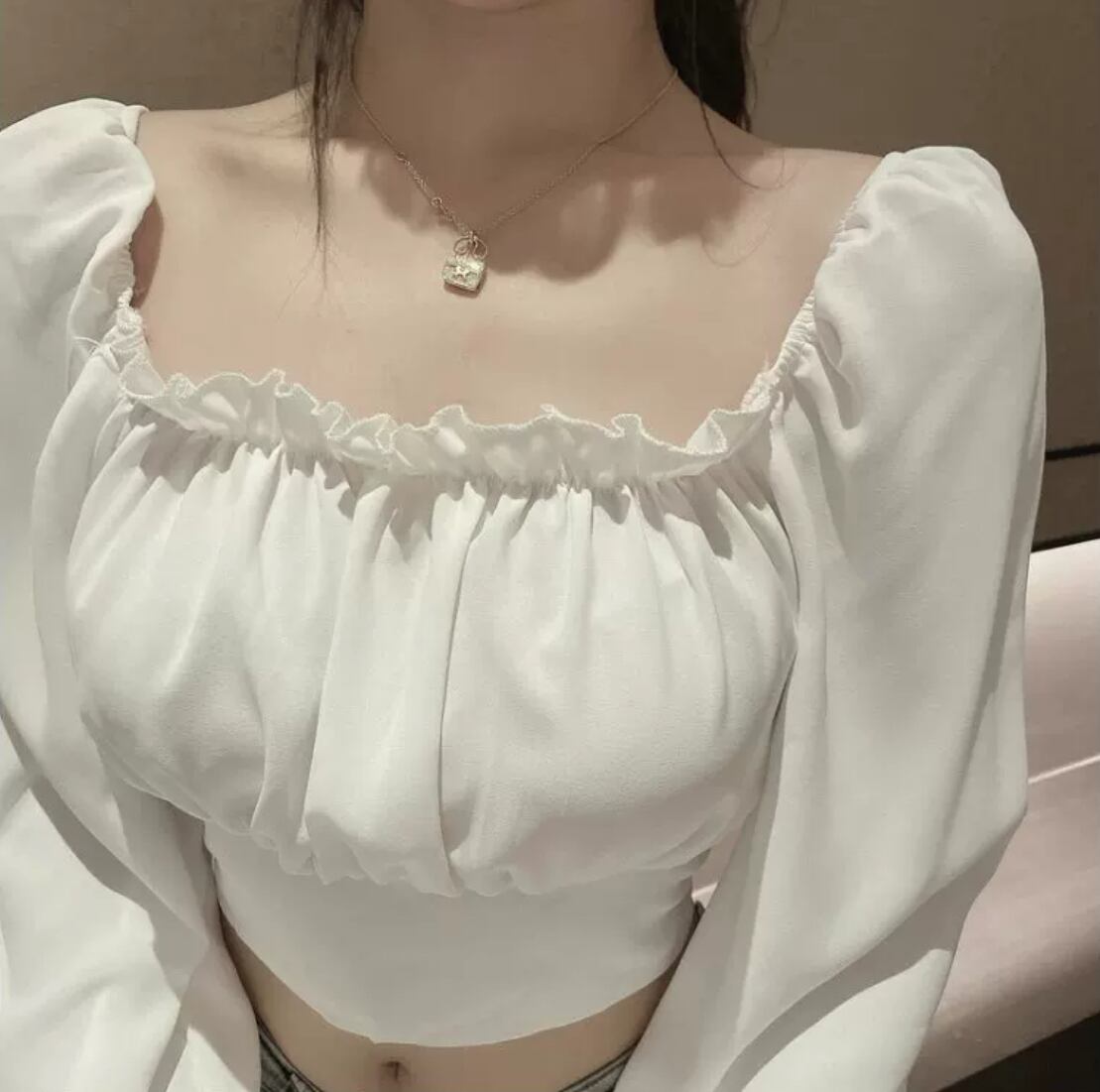 2405002 バックレースアップブラウス レディースファッション ショート丈 フェミニン スリムフィット ホワイト ブラック S M