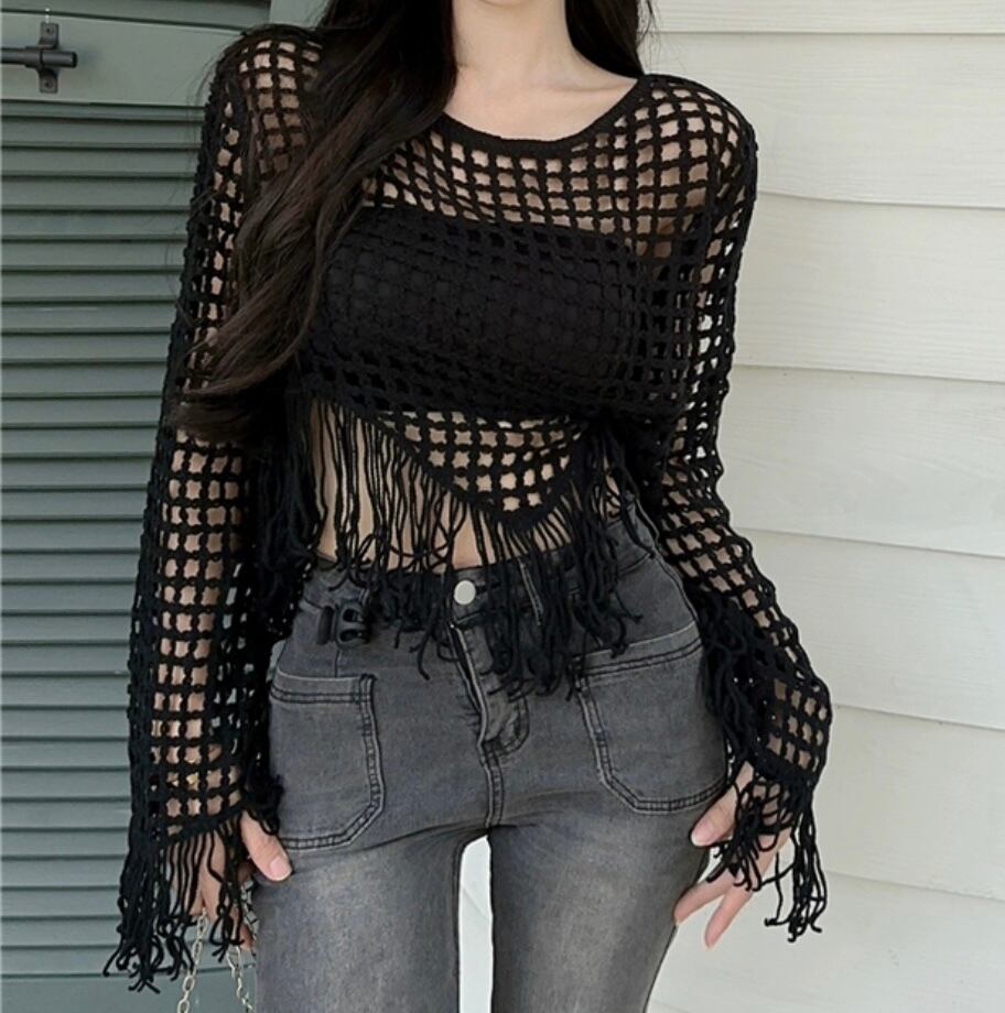 2405004 サマーニット レディースファッション ストリートファッション 大きめ ゆったり ブラック