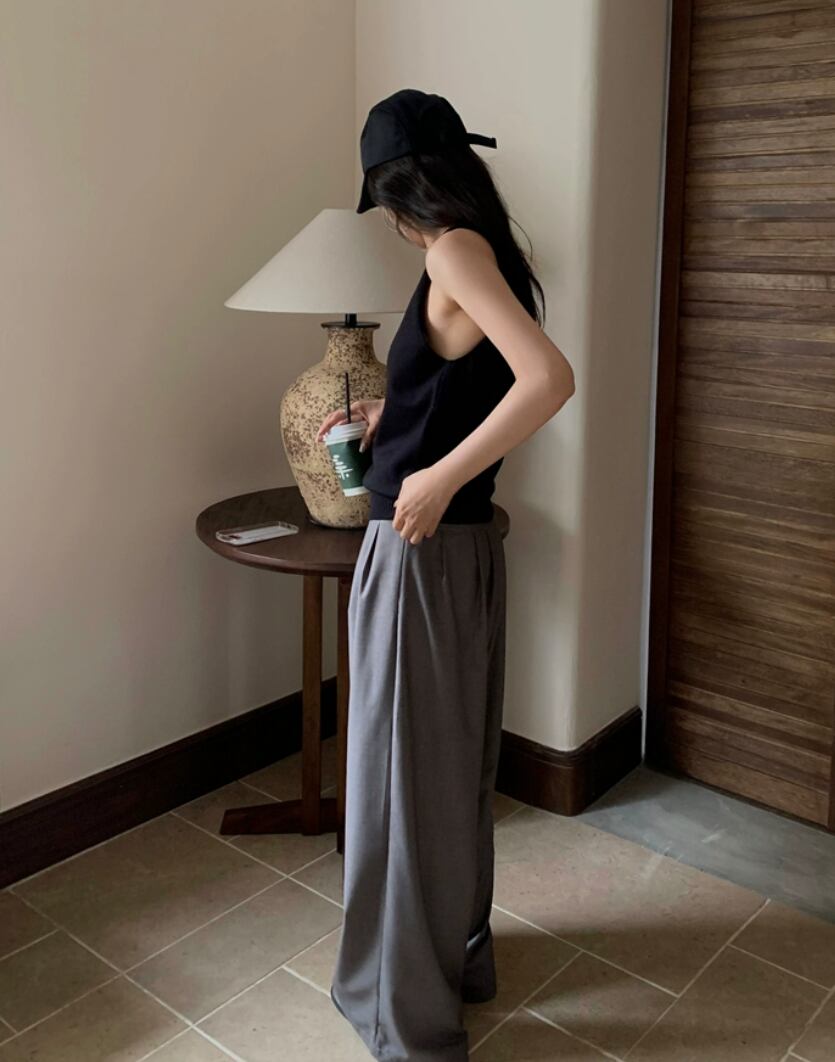 2405217 タンクトップ ベアバック Vバック 春夏コーデ レディースファッション グレー ブラック M L