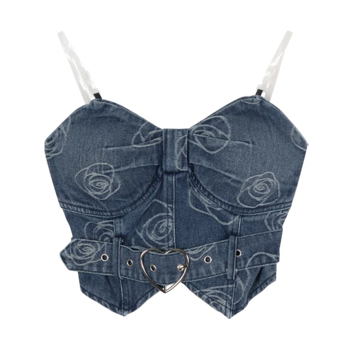 2405013 デニムショート丈ツーピース レディースファッション ストリートファッション バラ柄 かわいい スリムフィット ショート丈ツーピース S M L XL