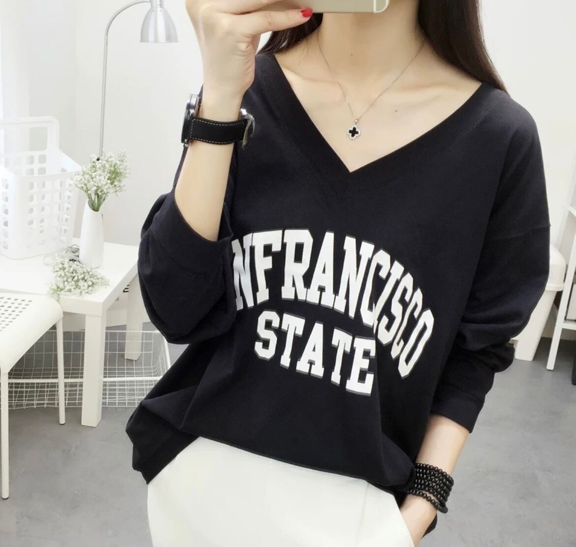 2405033 Vネック7分袖プルオーバー レディースファッション ストリートファッション 春夏コーデ ホワイト ブラック グレー M L XL 2XL