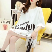 2405042 ロング丈デザインTシャツ レディースファッション ストリートファッション オーバーサイズ 大きめ ゆったり 夏コーデ ホワイト ブラック イエロー M L XL
