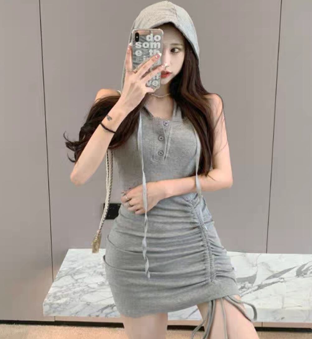 2405237 ミニワンピース フード付き ノースリーブ レディースファッション 夏コーデ グレー ブラック ピンク S M L