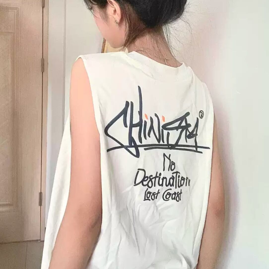 2405244 ノースリーブTシャツ タンクトップ ユニセックス レディースファッション ストリートファッション バックプリント 大きめ ゆったり ホワイト M L XL 2XL 3XL
