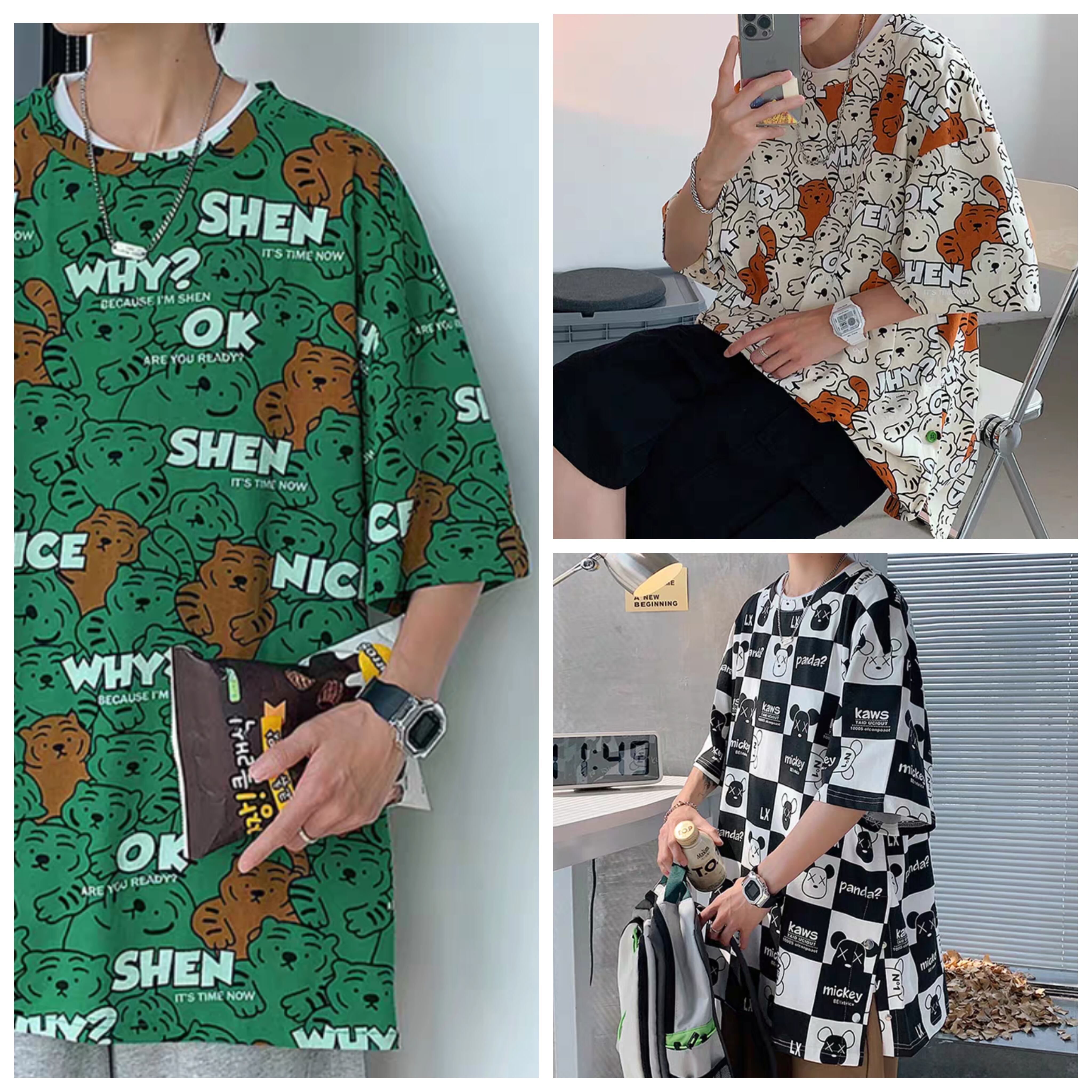 2405245 プリントTシャツ 総柄Tシャツ ユニセックス メンズファッション レディースファッション ゆったり 大きめ オーバーサイズ グリーン ホワイト ブラック M L XL 2XL 3XL 4XL 5XL